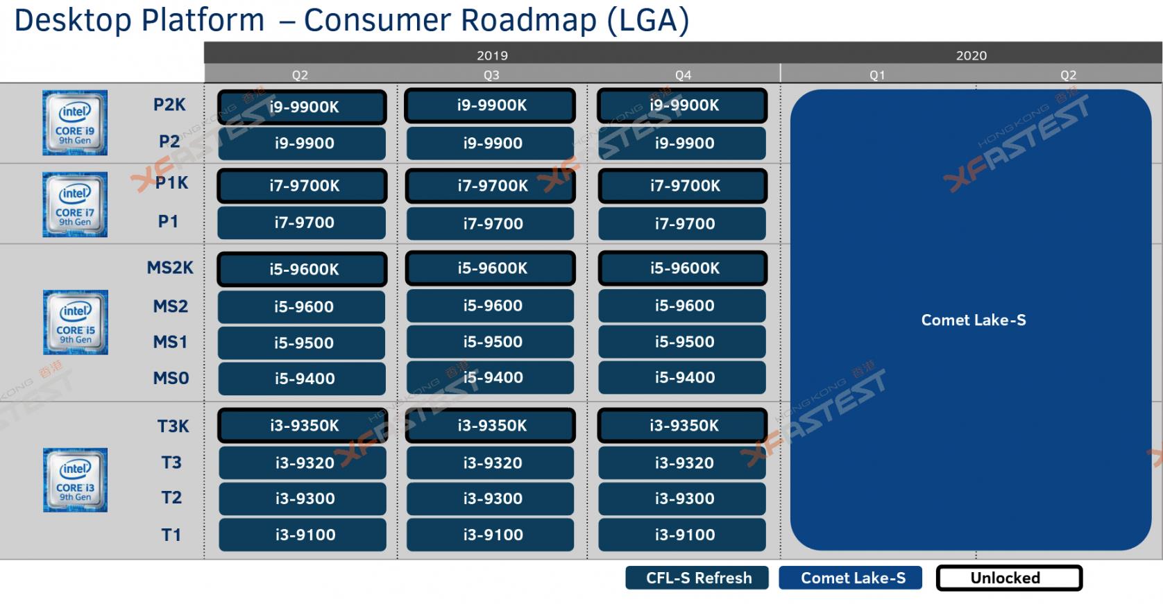 From the progress point of view, Comet Lake-S processor will be released in Q1 next year, until there is no change in Q2 quarter, but there is no clear Coet Lake-S processor SKU model on this picture, according to the previous report and ten The naming method of the Core is supposed to be the Core i7/5/3-10000 series.