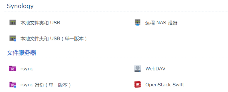 同時,使用Hyper Backup可以設(shè)置更多備份方式:數(shù)據(jù)備份任務(wù)以及LUN 備份任務(wù) ;