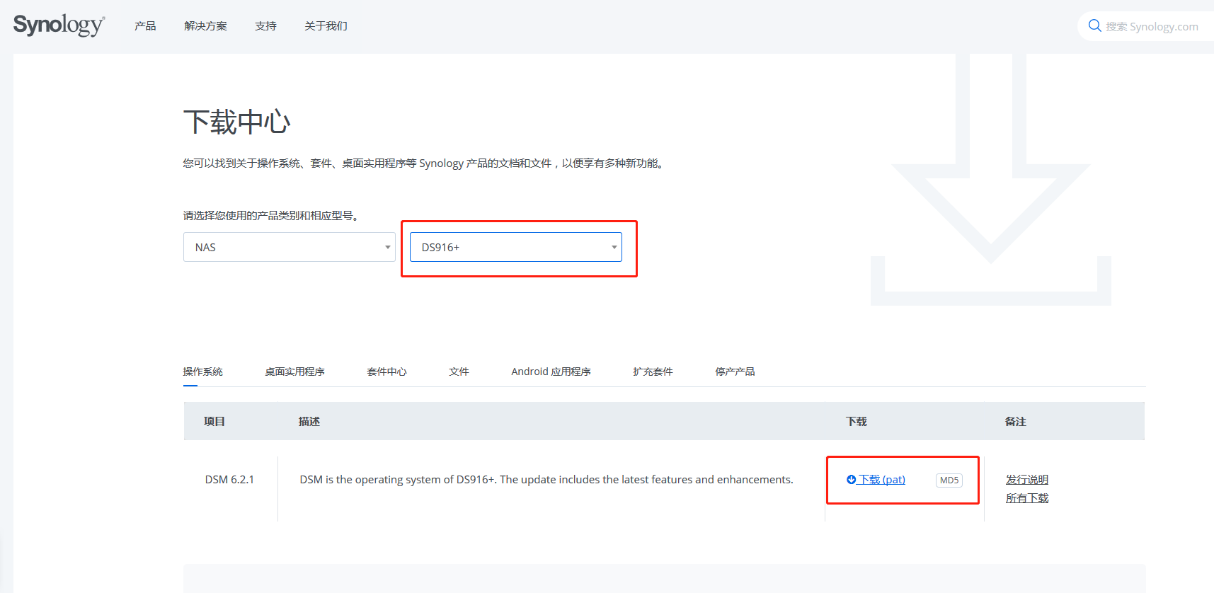 First of all, our group nas nas are not systematic, first go to the synology official website to download DSM firmware and installation tools.