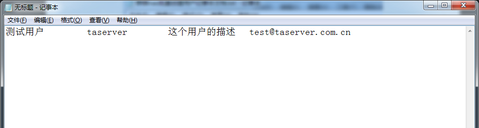 Use Notepad to open a new file. Enter user information in the following order and separate them with the TAB key: