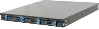 For Synology NAS with 2 or more hard drive models, the hard drive locations are sorted from left to right or top to bottom. To find the actual hard drive, please refer to the number shown below.